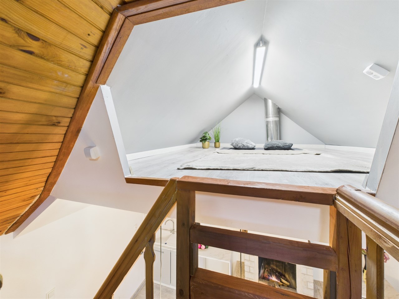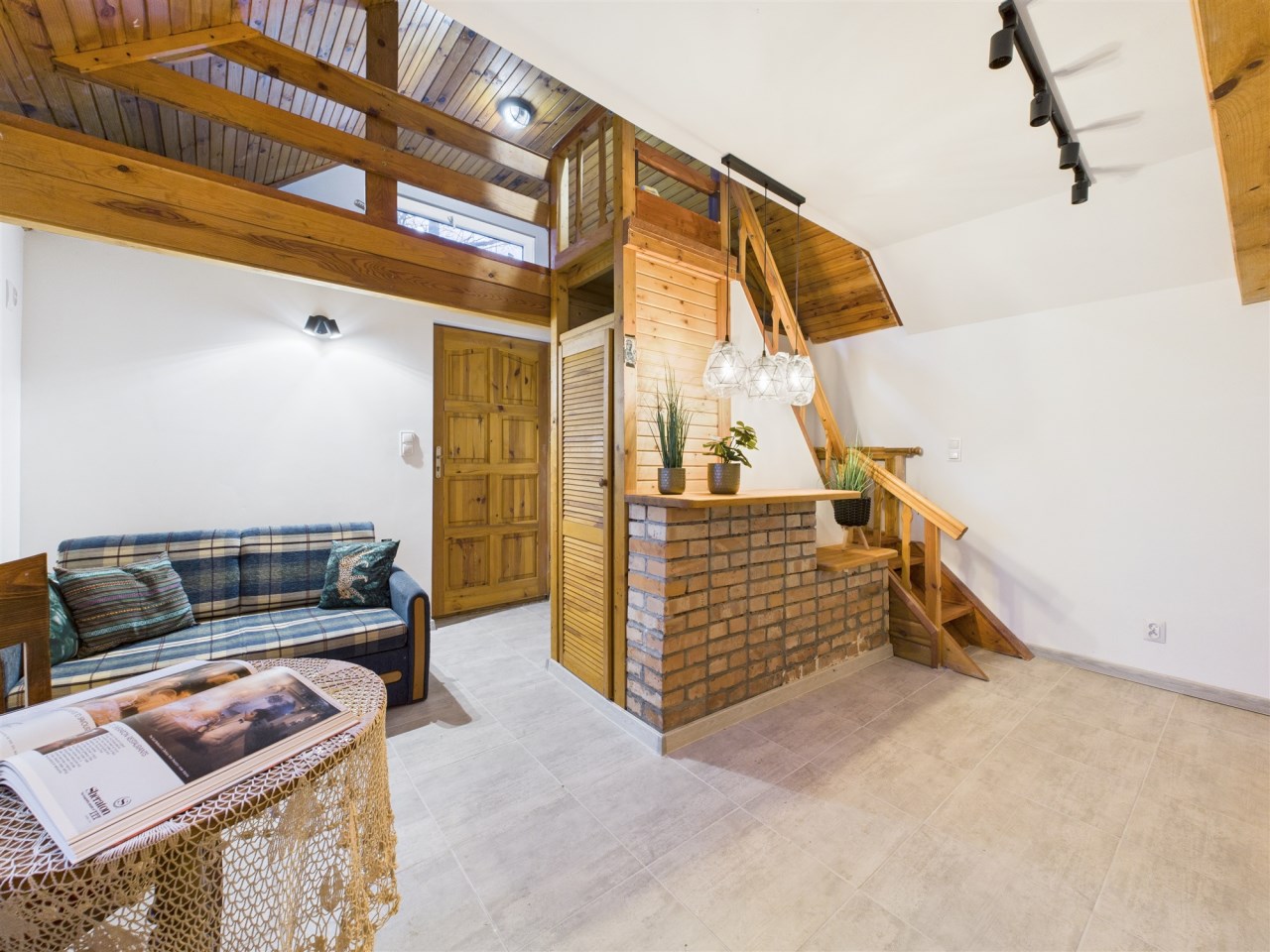 Kompaktowy, drewniany domek został zaprojektowany tak, by w pełni wykorzystać każdy metr kwadratowy, tworząc przytulną i funkcjonalną przestrzeń: