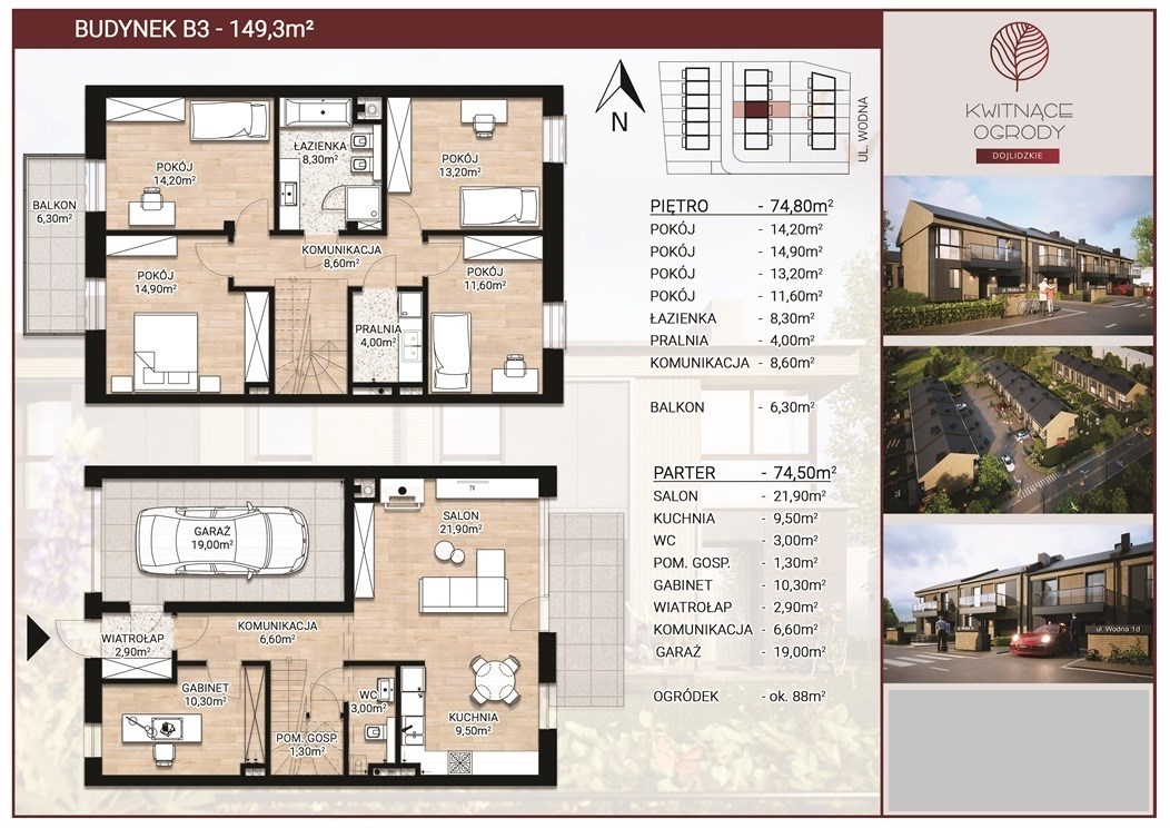 Oferujemy do sprzedaży segment B3 w inwestycji "Kwitnące Ogrody Dojlidzkie" składającej się z 16 budynków mieszkalnych jednorodzinnych, niepodpiwniczonych w zabudowie szeregowej położonych w Białymstoku przy ul. Wodnej na osiedlu Dojlidy Górne.
