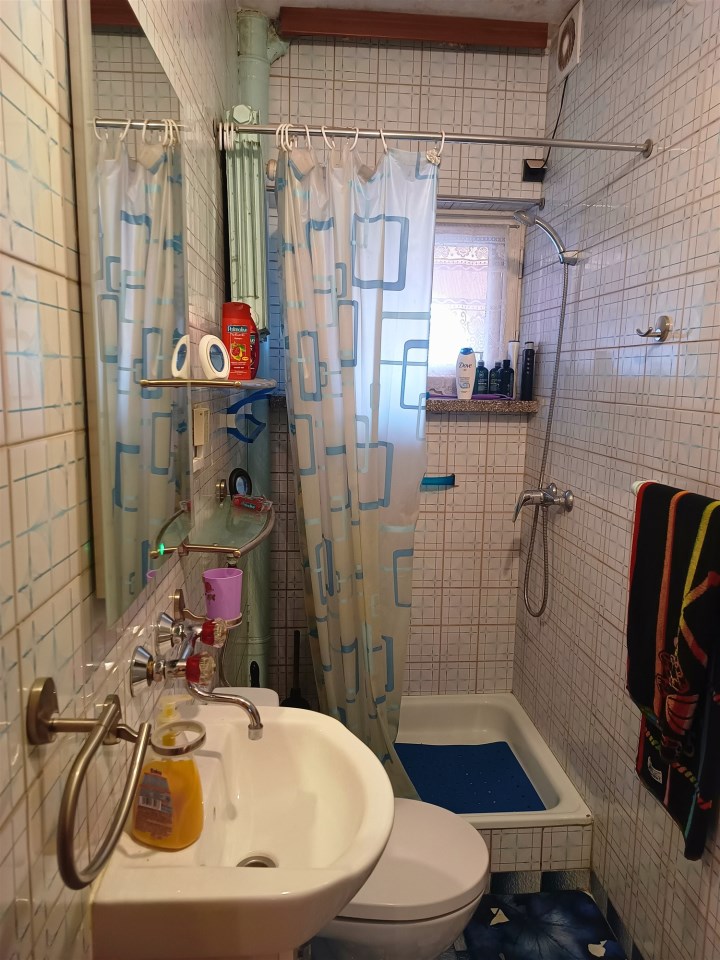 Wyposażenie łazienki | lustro, pralka, prysznic, wanna, WC |