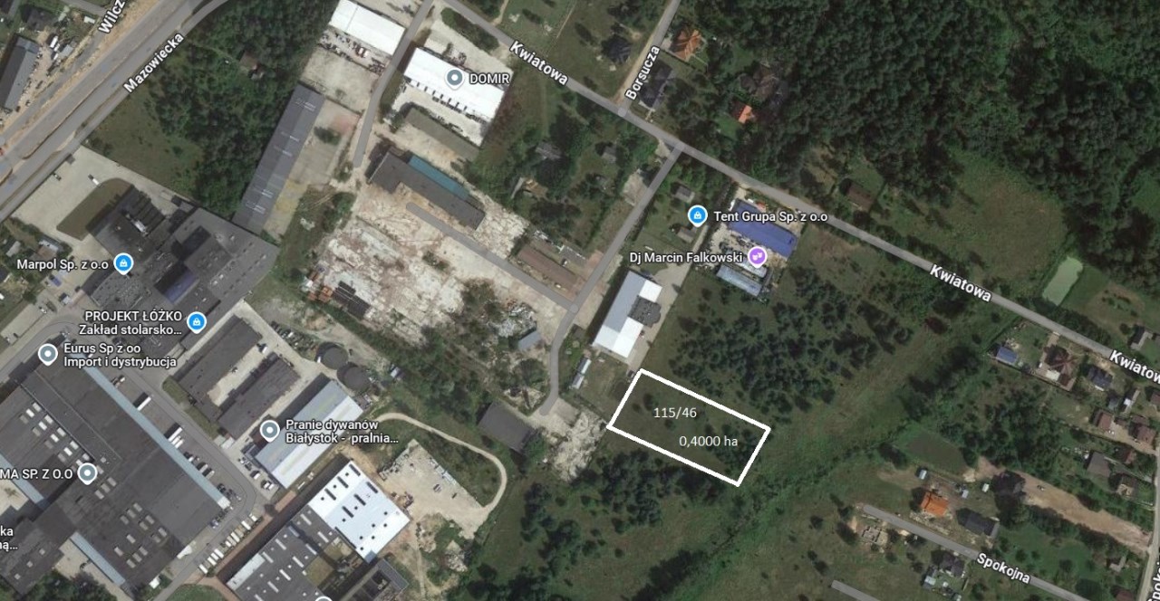 Działka położona jest na terenach o ugruntowanym charakterze przemysłowym i usługowym, w otoczeniu nowoczesnych hal produkcyjnych, magazynów oraz firm logistycznych i dystrybucyjnych. Położenie oraz dogodna komunikacja z głównymi trasami wylotowymi zapewniają szybki dostęp do Białegostoku i okolicznych miejscowości.