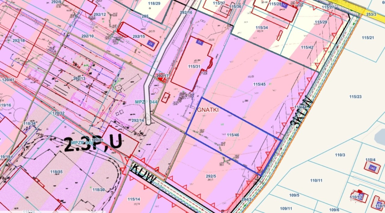 • MPZP: teren oznaczony symbolem 2.3 P,Uzabudowa przemysłowa i usługowa z dopuszczeniem urządzeń towarzyszących oraz niezbędnej infrastruktury technicznej