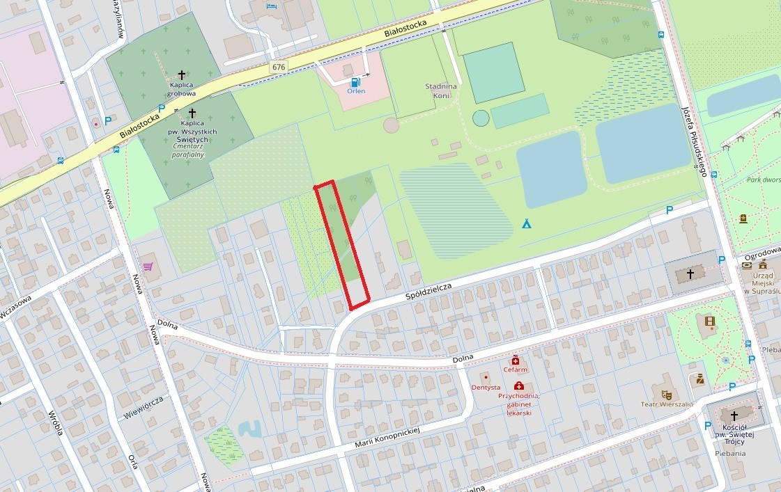 Oferujemy działkę budowlaną o powierzchni 3054 m² (22 x 139 m) przy ul. Spółdzielczej w Supraślu – w sąsiedztwie wolnostojącej zabudowy jednorodzinnej. Cisza, spokój, a jednocześnie pełna infrastruktura i szybki dojazd do miasta. Zaledwie 10 km do Białegostoku, ale mentalnie – jakbyś był o lata świetlne od miejskiego chaosu.