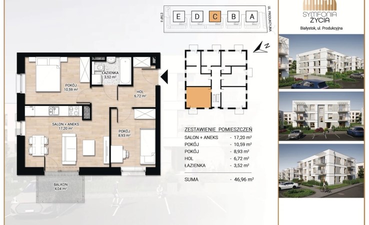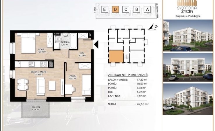 Oferujemy mieszkanie 2- pokojowe nr F1 o powierzchni 34,22m2 zlokalizowane na parterze w kameralnym budynku realizowanym w ramach II etapu inwestycji deweloperskiej "Symfonia Życia " przy ulicy Produkcyjnej w Białymstoku.