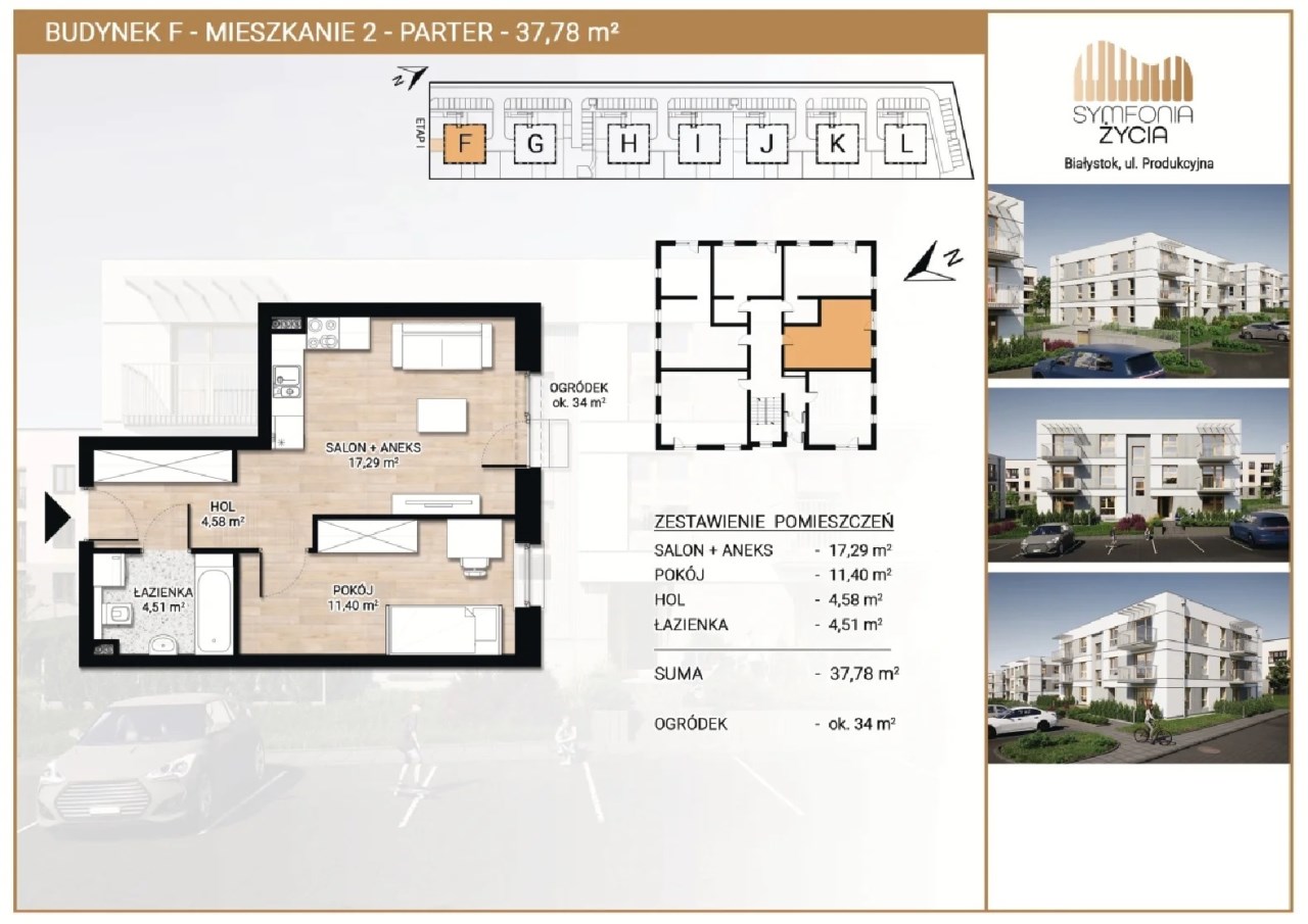 Oferujemy mieszkanie 2- pokojowe nr F2 o powierzchni 37,78m2 zlokalizowane na parterze w kameralnym budynku realizowanym w ramach II etapu inwestycji deweloperskiej "Symfonia Życia " przy ulicy Produkcyjnej w Białymstoku.