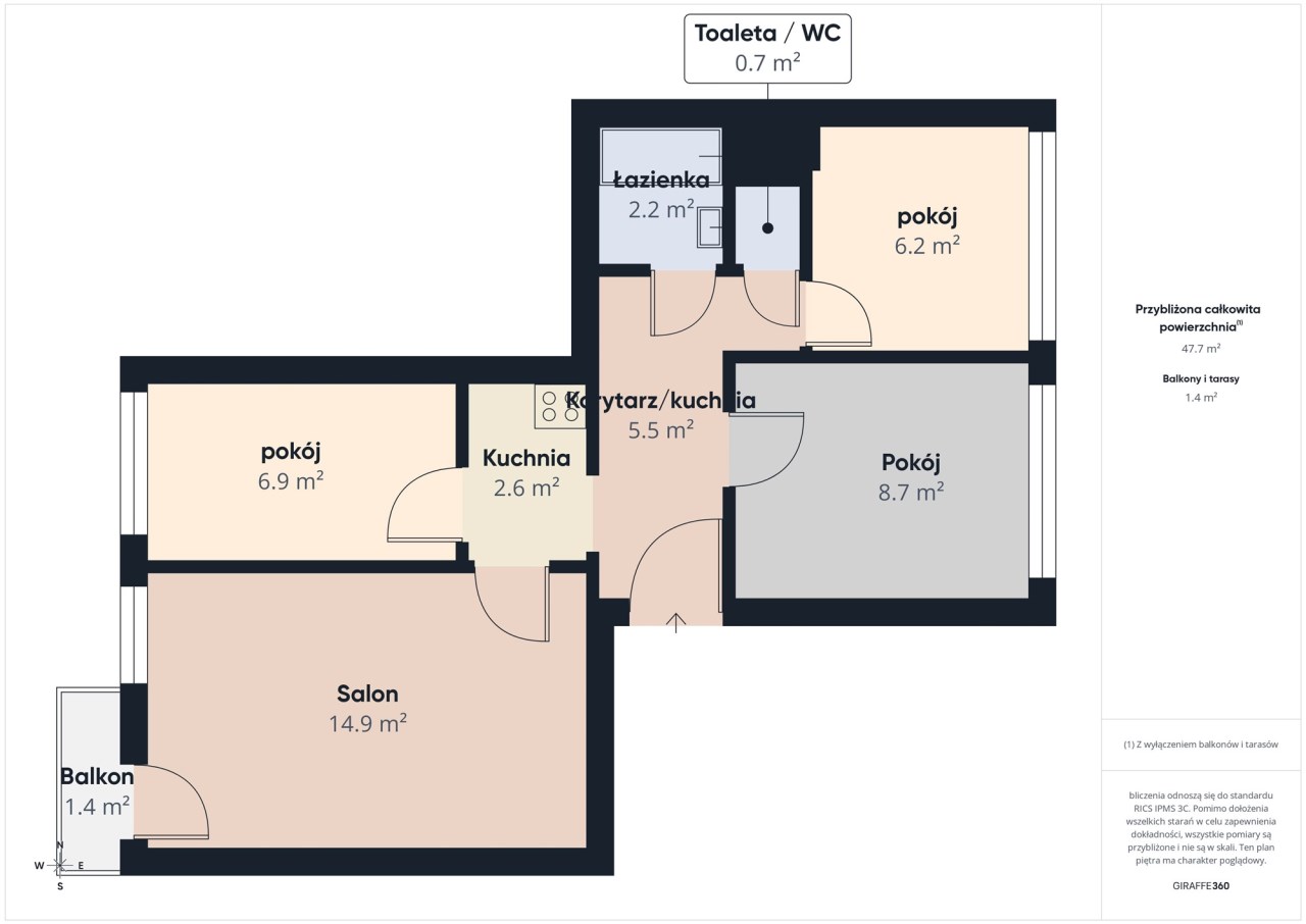 Na sprzedaż funkcjonalne mieszkanie o powierzchni 47,7 m² położone przy ul. Jerzego  Waszyngtona 18 - w ścisłym centrum Białegostoku. Mieszkanie znajduje się na 7 piętrze w 11-piętrowym budynku z nową windą, co zapewnia komfort codziennego użytkowania oraz przyjemną ekspozycję światła.