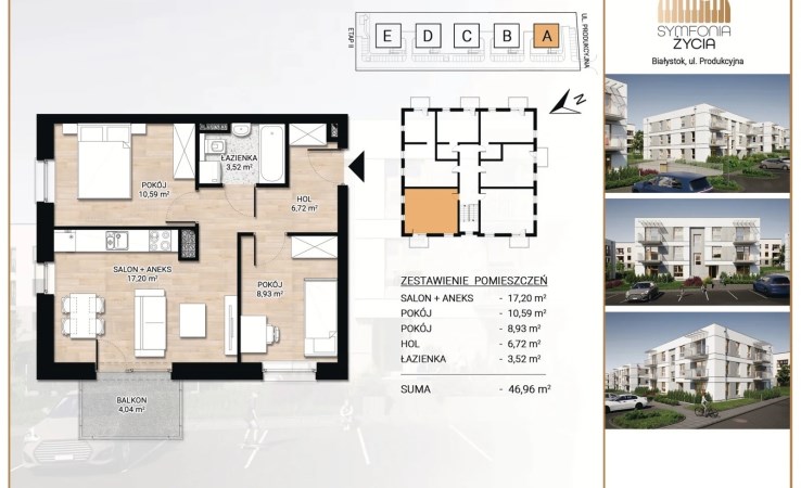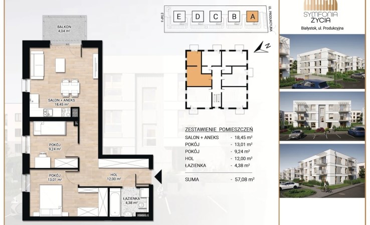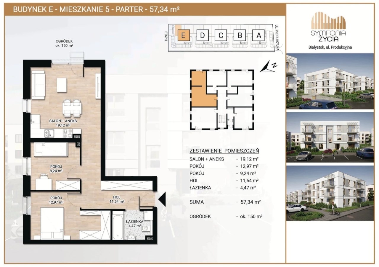 Oferujemy mieszkanie 3- pokojowe nr D5 o powierzchni 57,34m2 zlokalizowane na parterze w kameralnym budynku realizowanym w ramach inwestycji deweloperskiej "Symfonia Życia " przy ulicy Produkcyjnej w Białymstoku.