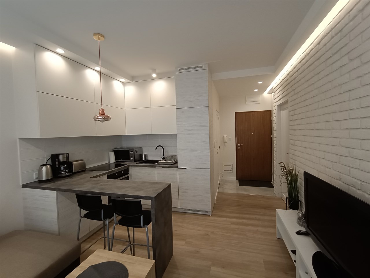 Mieszkanie jest wykończone, umeblowane i wyposażone we wszystkie niezbędne sprzęty AGD i RTV - nic, tylko wnosić walizki i mieszkać!