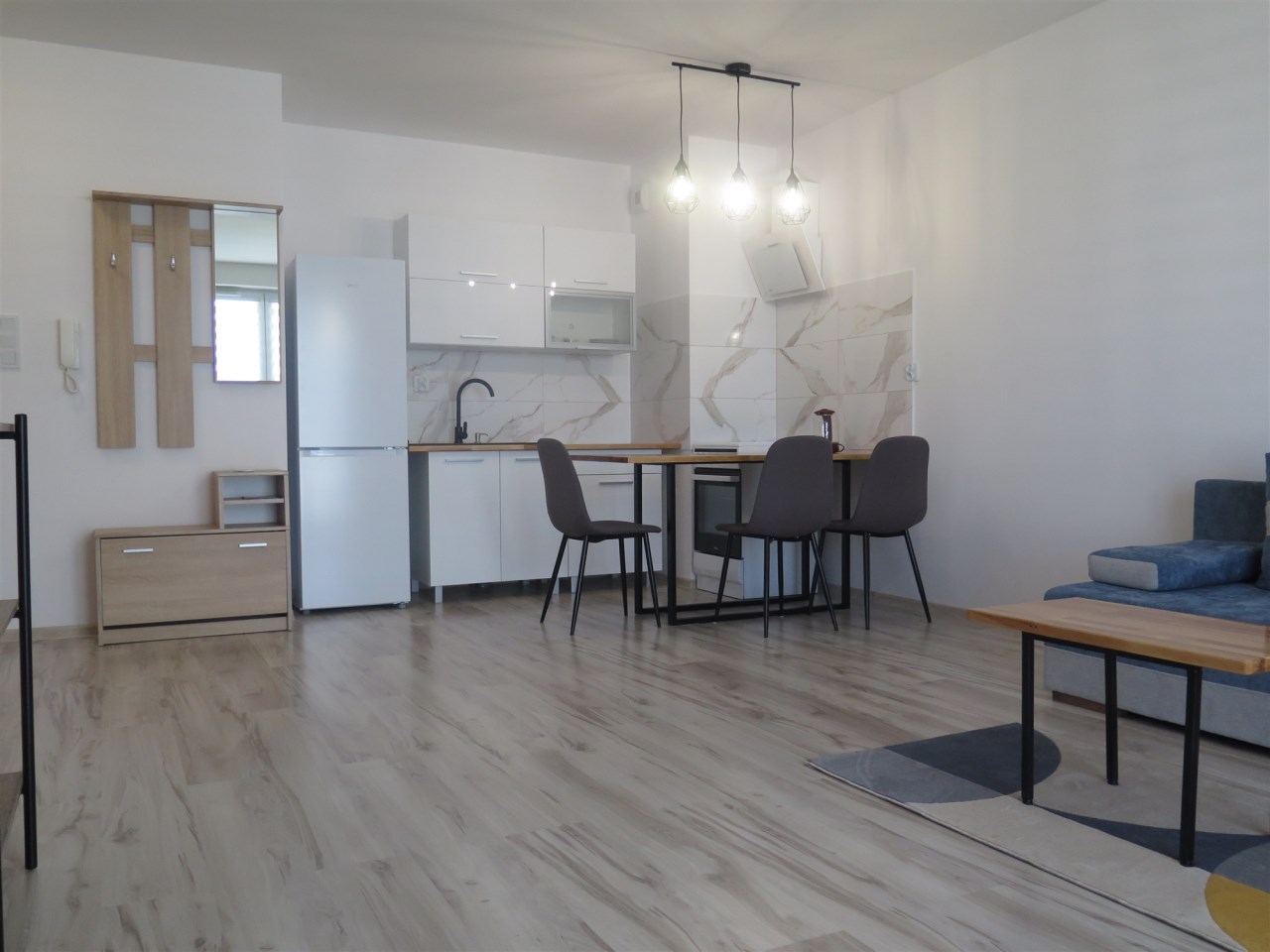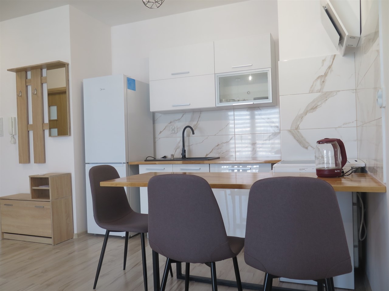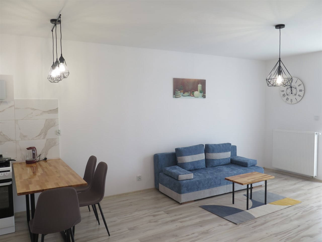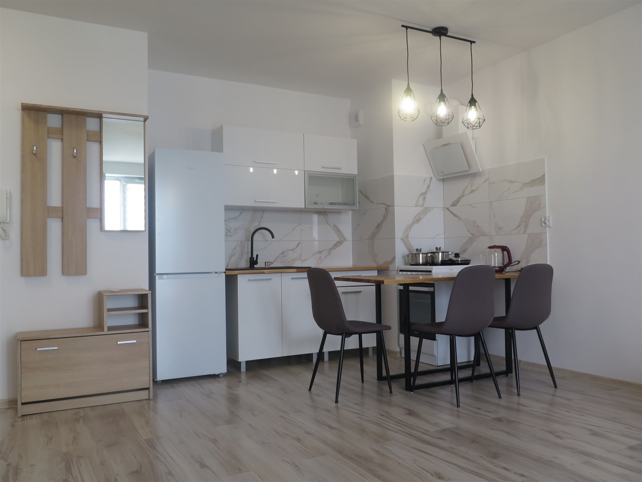 Mieszkanie składa się z salonu z aneksem kuchennym, sypialni, łazienki z wc oraz dużego balkonu.
