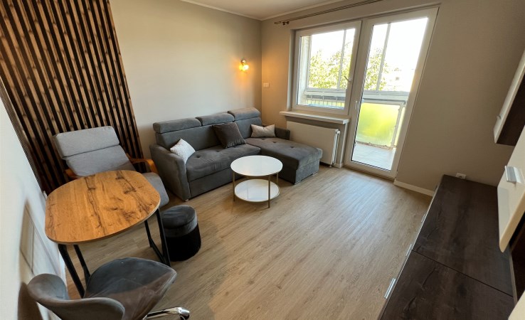 Mieszkanie zostało wyposażone we wszelkie niezbędne sprzęty (lodówka, zmywarka, piekarnik płyta indukcyjna, zmywarka, pralka, suszarka) oraz meble (zabudowa kuchenna, pojemna szafa w przedpokoju, sofa, łóżka, komody).